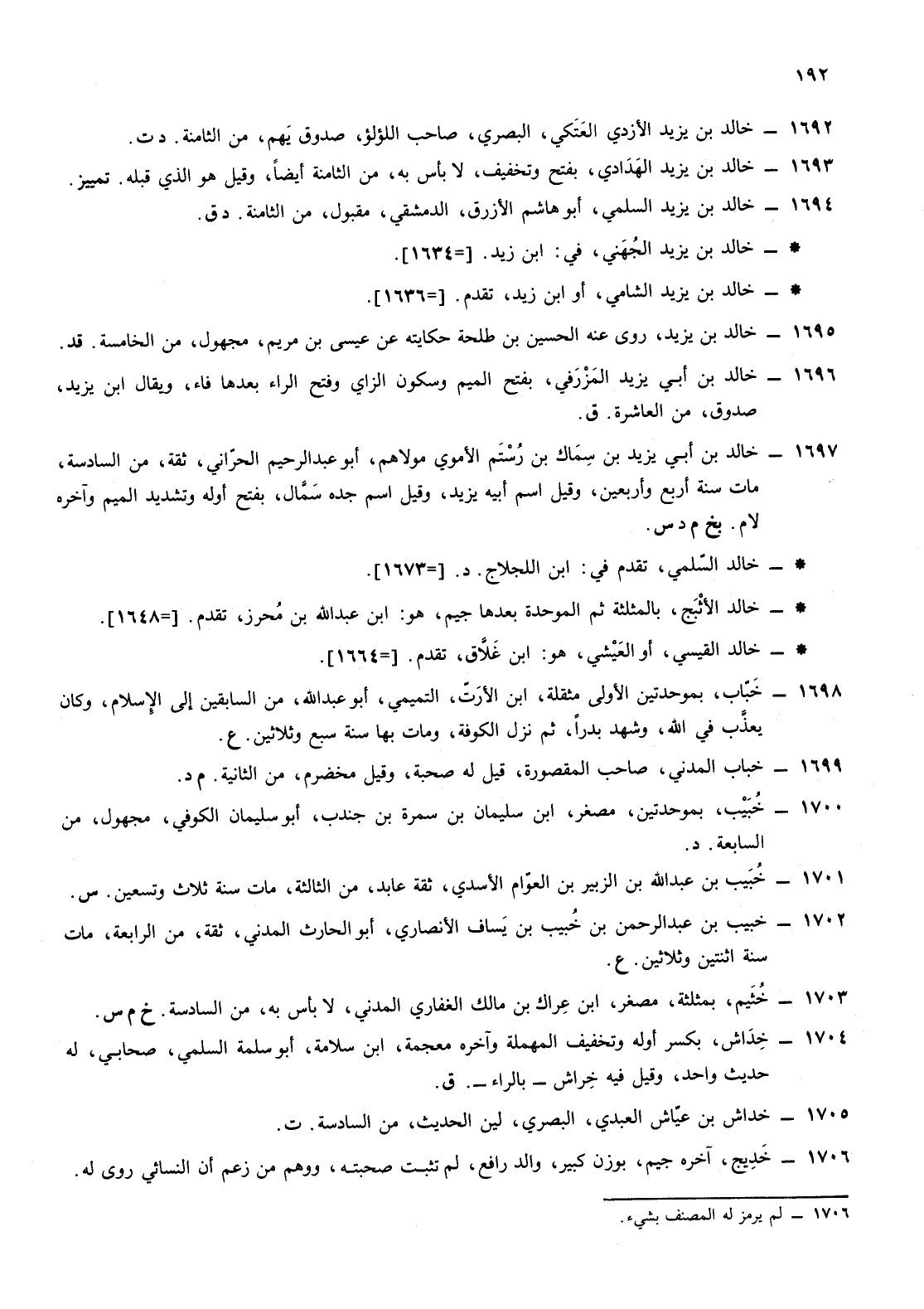 1706- خديج آخره جيم بوزن كبير [كثير] والد رافع لم تثبت صحبته [لم تثبت له صحبة] ووهم من زعم أن النسائي روى له