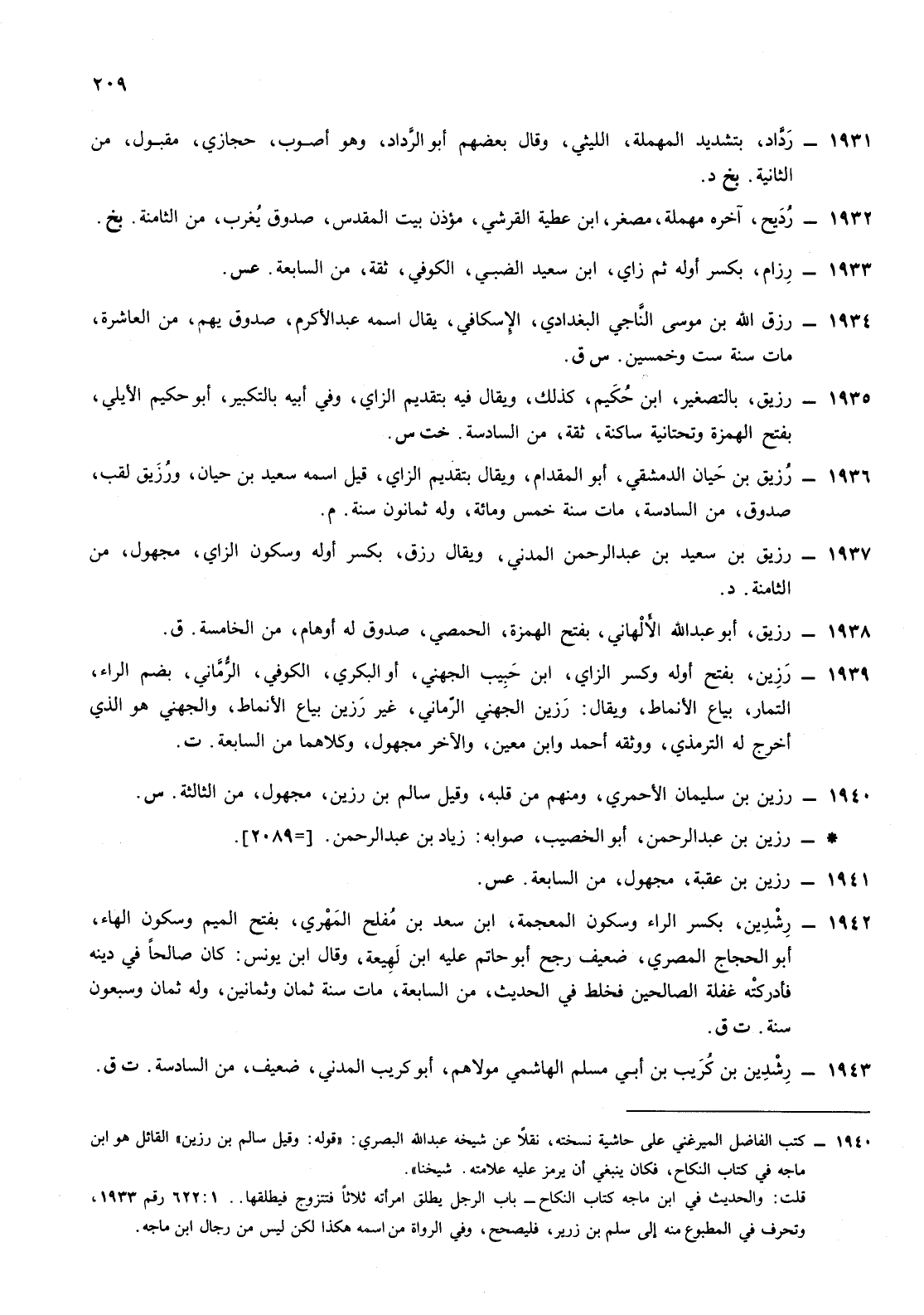 1940- رزين ابن سليمان الأحمري ومنهم من قلبه وقيل سالم ابن رزين مجهول من الثالثة س