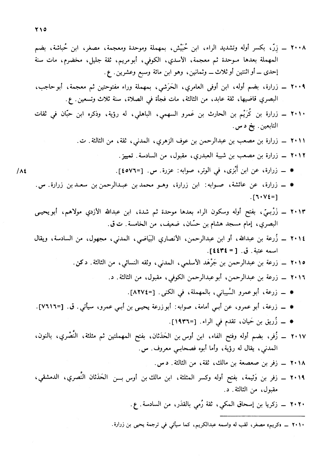 2010- زرارة ابن كريم ابن الحارث ابن عمرو السهمي الباهلي له رؤية وذكره ابن حبان في ثقات التابعين بخ د س