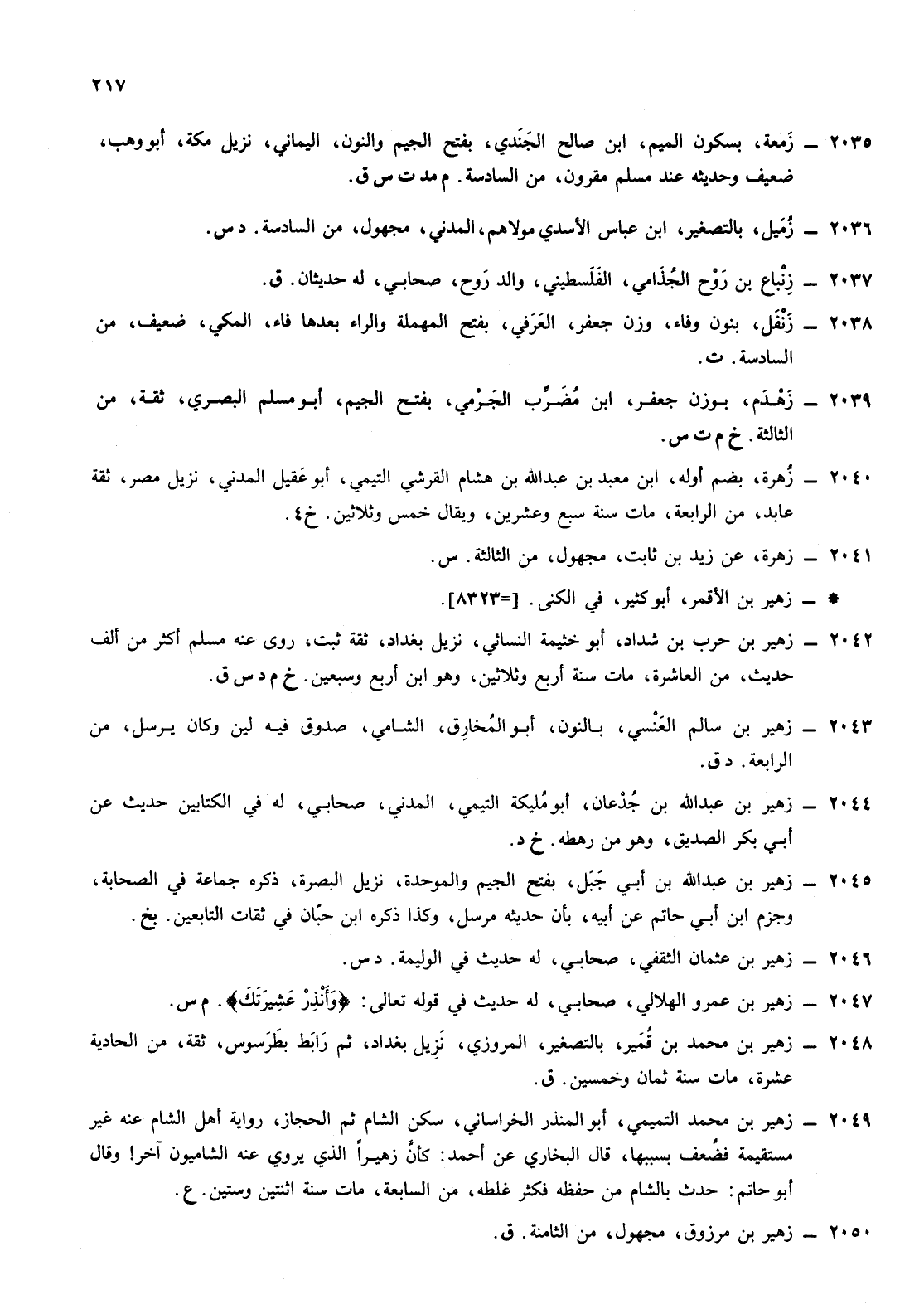 2039- زهدم بوزن جعفر ابن مضرب الجرمي بفتح الجيم أبو مسلم البصري ثقة من الثالثة خ م ت س
