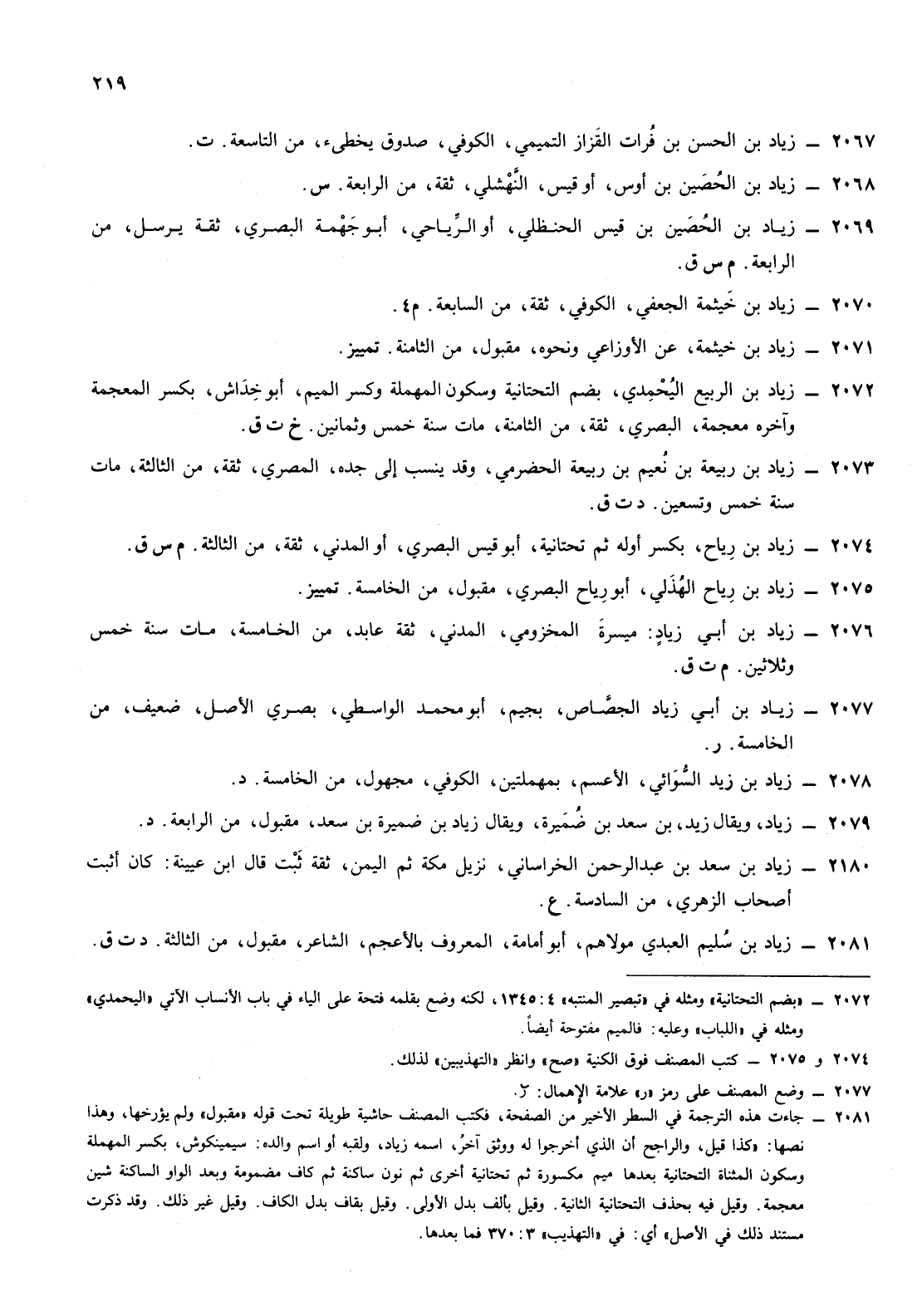 2076- زياد ابن أبي زياد ميسرة المخزومي المدني [مولى ابن عياش] ثقة عابد من الخامسة مات سنة خمس وثلاثين م ت ق