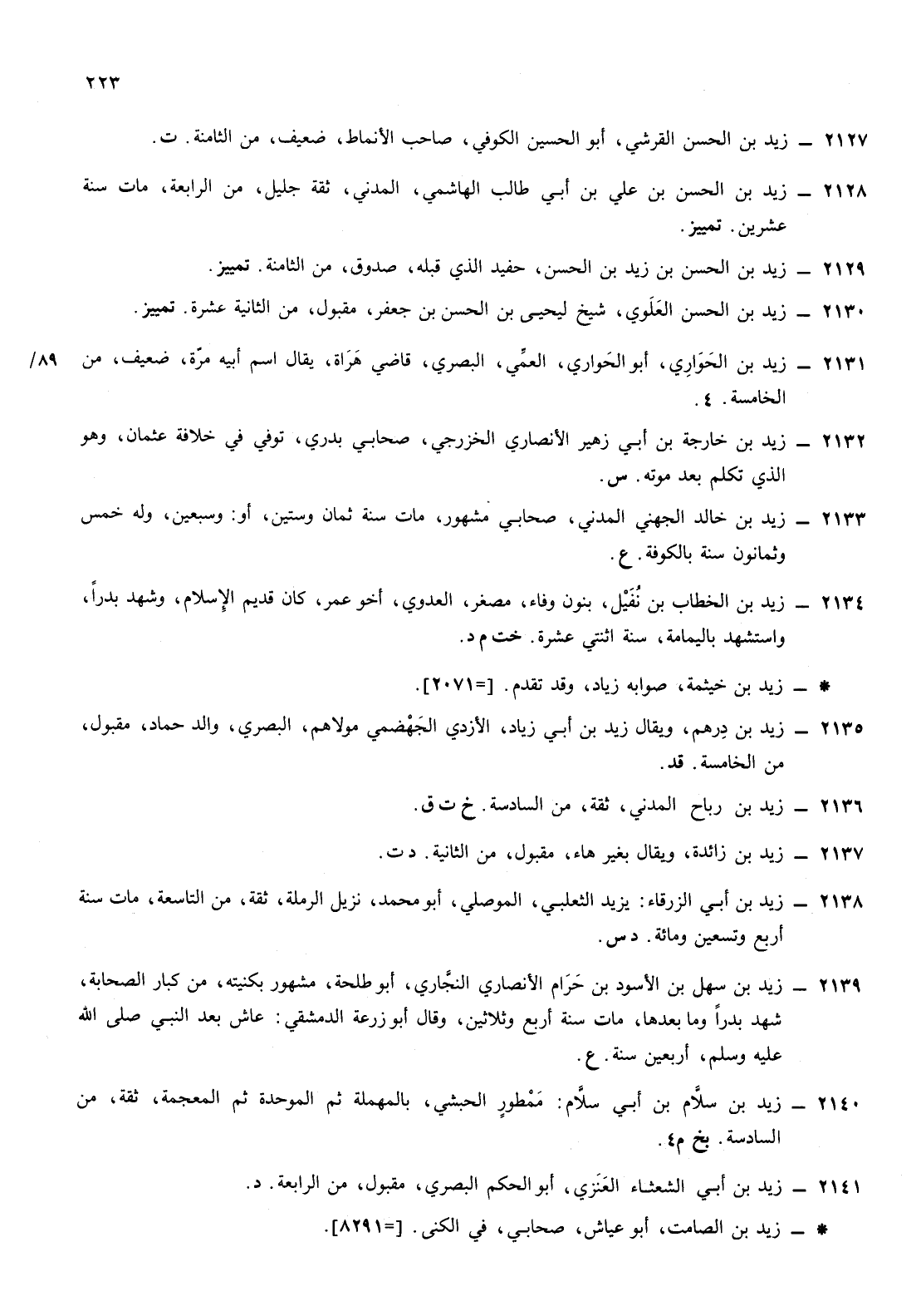 2128- زيد ابن الحسن ابن علي ابن أبي طالب الهاشمي المدني ثقة جليل من الرابعة مات سنة عشرين تمييز