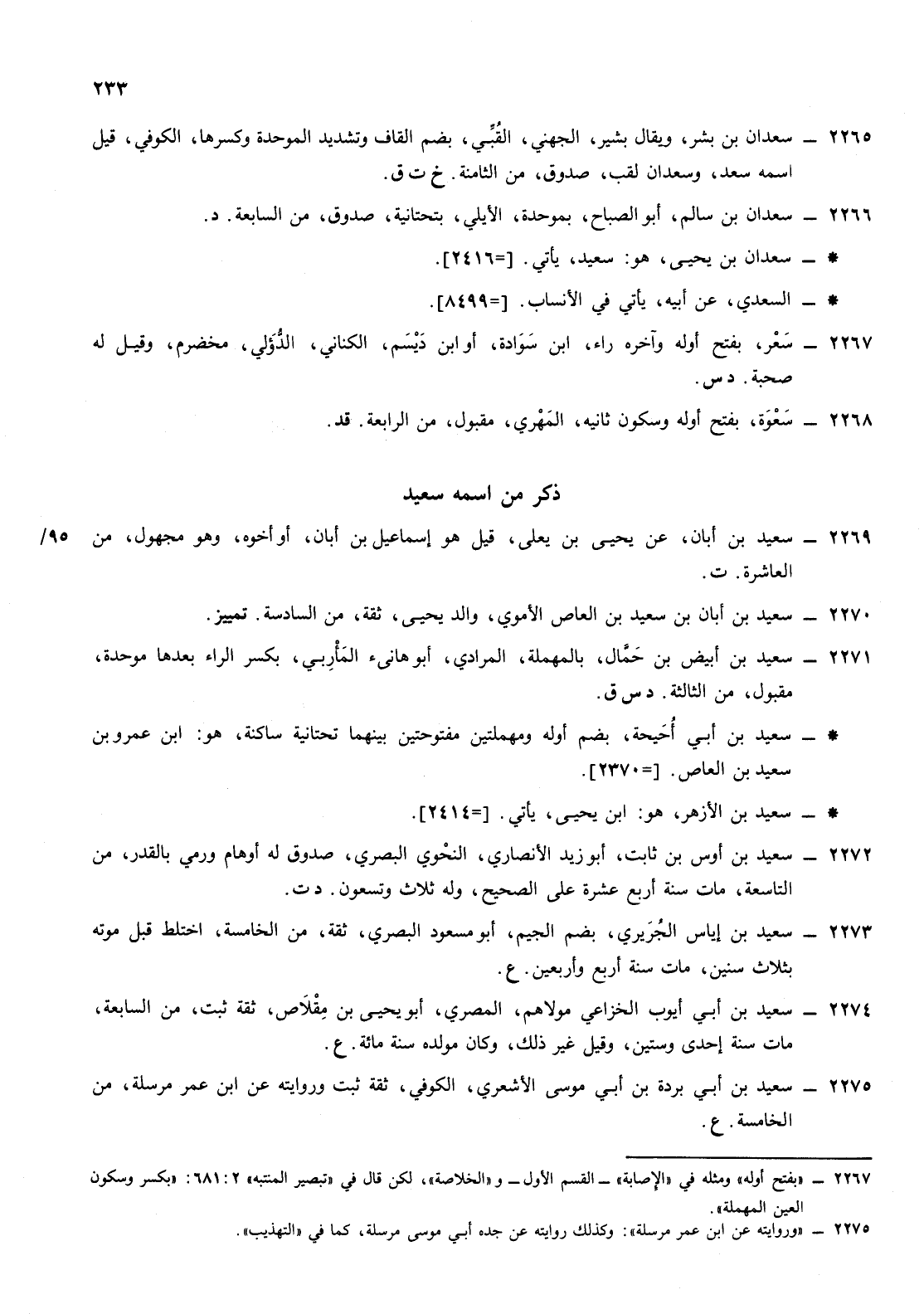 2272- سعيد ابن أوس ابن ثابت أبو زيد الأنصاري النحوي البصري صدوق له أوهام ورمي بالقدر من التاسعة مات سنة أربع عشرة على الصحيح وله ثلاث وتسعون [سنة] د ت