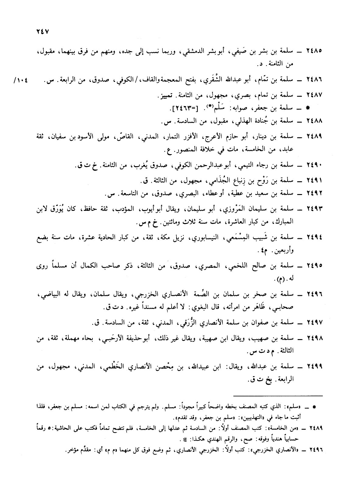 2493- سلمة ابن سليمان المروزي أبو سليمان ويقال أبو أيوب المؤدب ثقة حافظ كان يورق لابن المبارك من كبار العاشرة مات سنة ثلاث ومائتين خ م س
