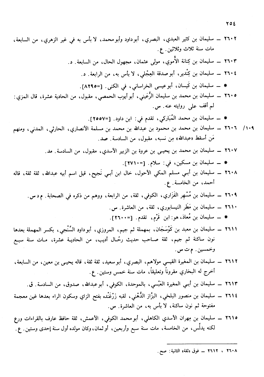 2605- سليمان ابن محمد ابن سليمان الرعيني أبو أيوب الحمصي مقبول من الحادية عشرة قال المزي لم أقف على روايته [رواية] عنه س