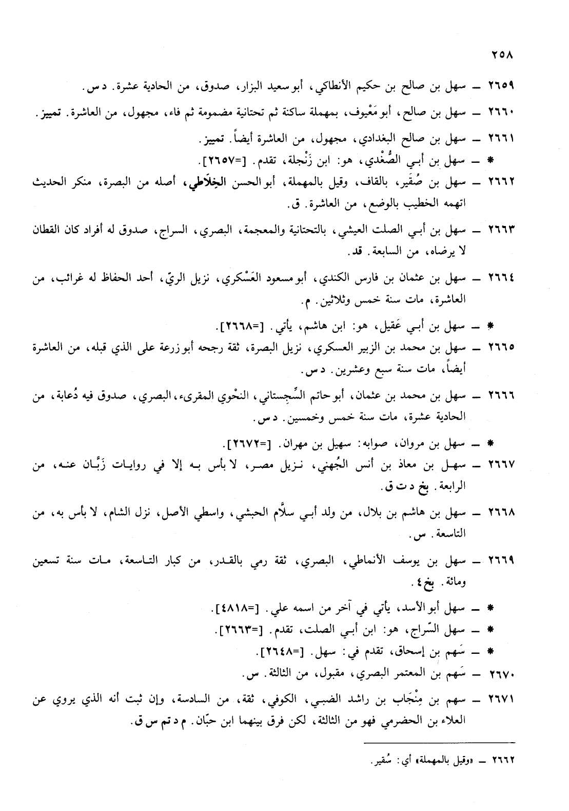 2661- سهل ابن صالح البغدادي مجهول من العاشرة أيضا تمييز