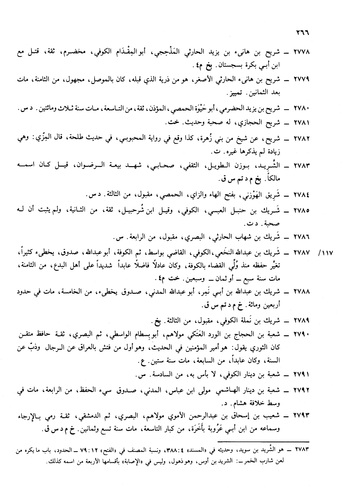 2779- شريح ابن هانئ الحارثي الأصغر هو من ذرية الذي قبله كان بالموصل مجهول من الثامنة مات بعد الثمانين تمييز