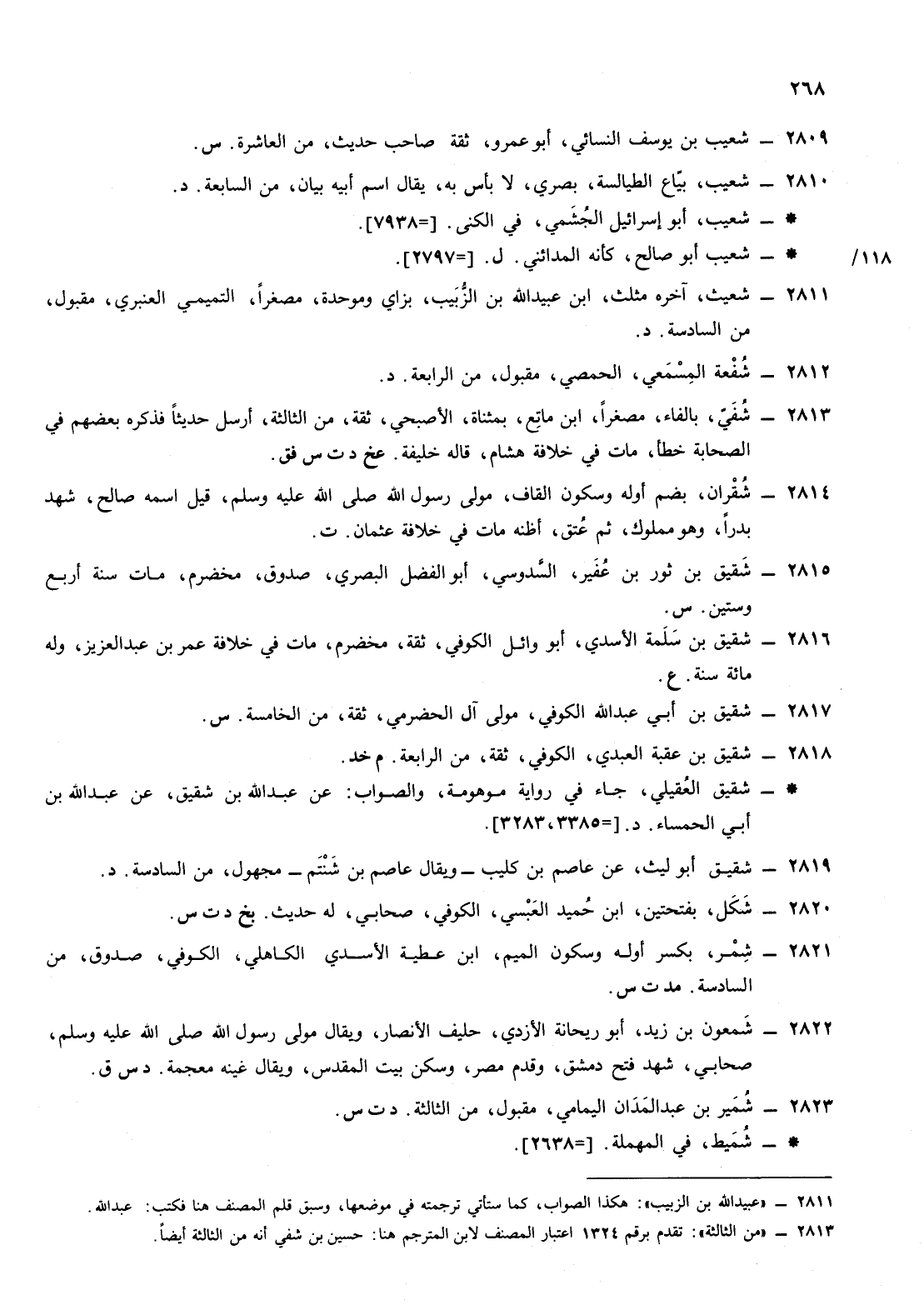 2818- شقيق ابن عقبة العبدي الكوفي ثقة من الرابعة م خد
