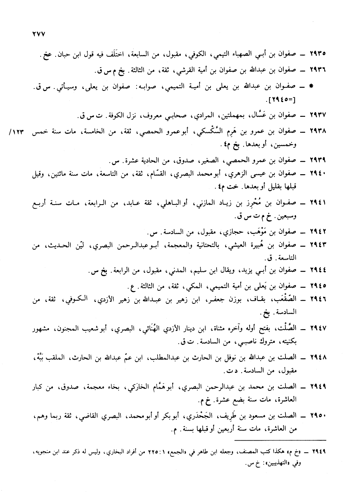 2938- صفوان ابن عمرو ابن هرم السكسكي أبو عمرو الحمصي ثقة من الخامسة مات سنة خمس وخمسين أو بعدها بخ م 4