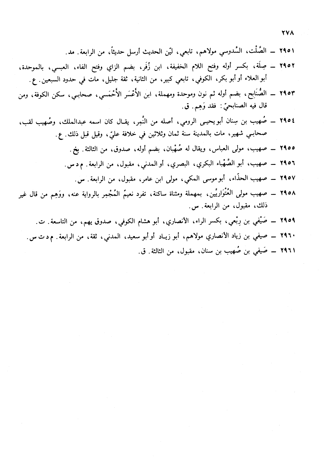 2958- صهيب مولى العتواريين بمهملة ومثناة ساكنة تفرد نعيم المجمر بالرواية عنه ووهم من قال غير ذلك مقبول من الرابعة س
