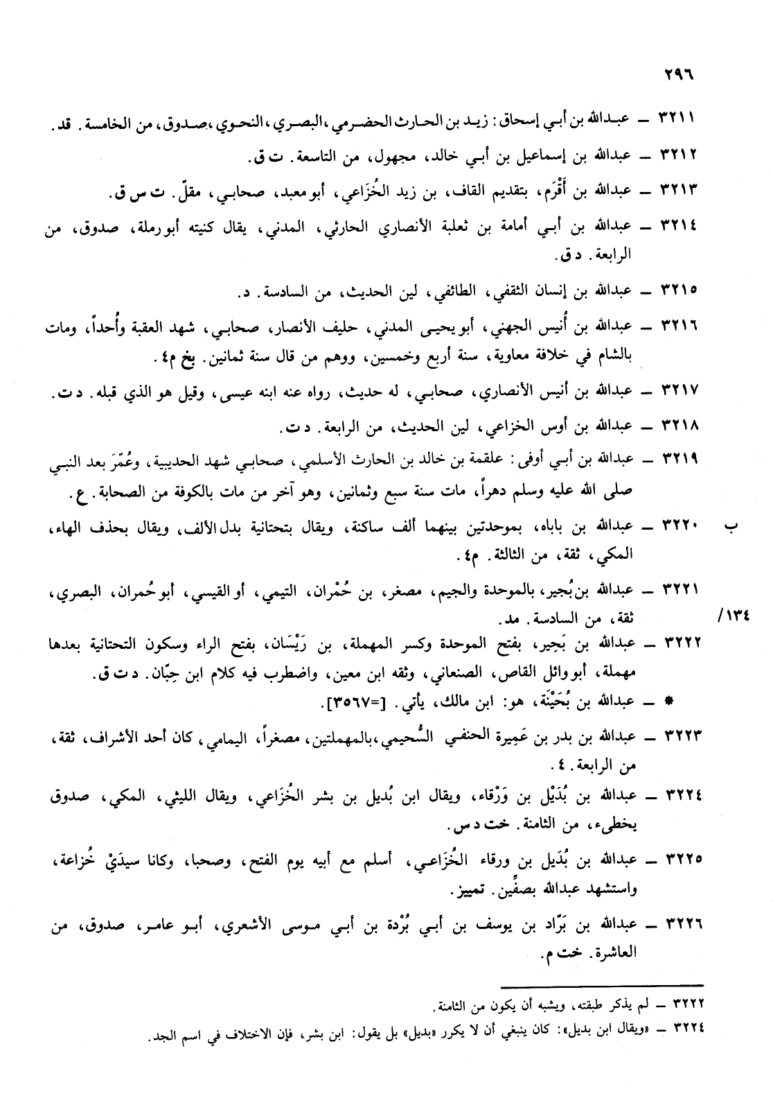 3225- عبد الله ابن بديل ابن ورقاء الخزاعي أسلم مع أبيه يوم الفتح وصحبا وكانا سيدي خزاعة واستشهد عبد الله بصفين تمييز