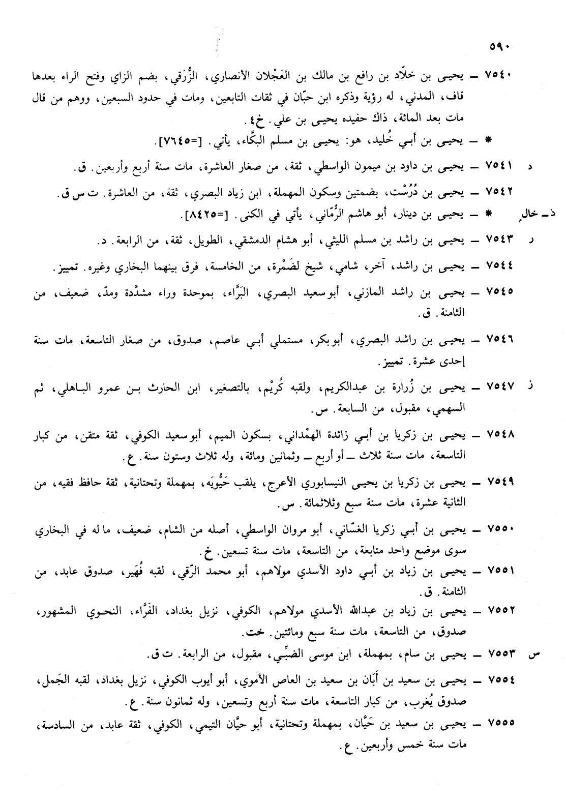 7548- يحيى ابن زكريا ابن أبي زائدة الهمداني بسكون الميم أبو سعيد الكوفي ثقة متقن من كبار التاسعة مات سنة ثلاث أو أربع وثمانين ومائة وله ثلاث وستون سنة ع
