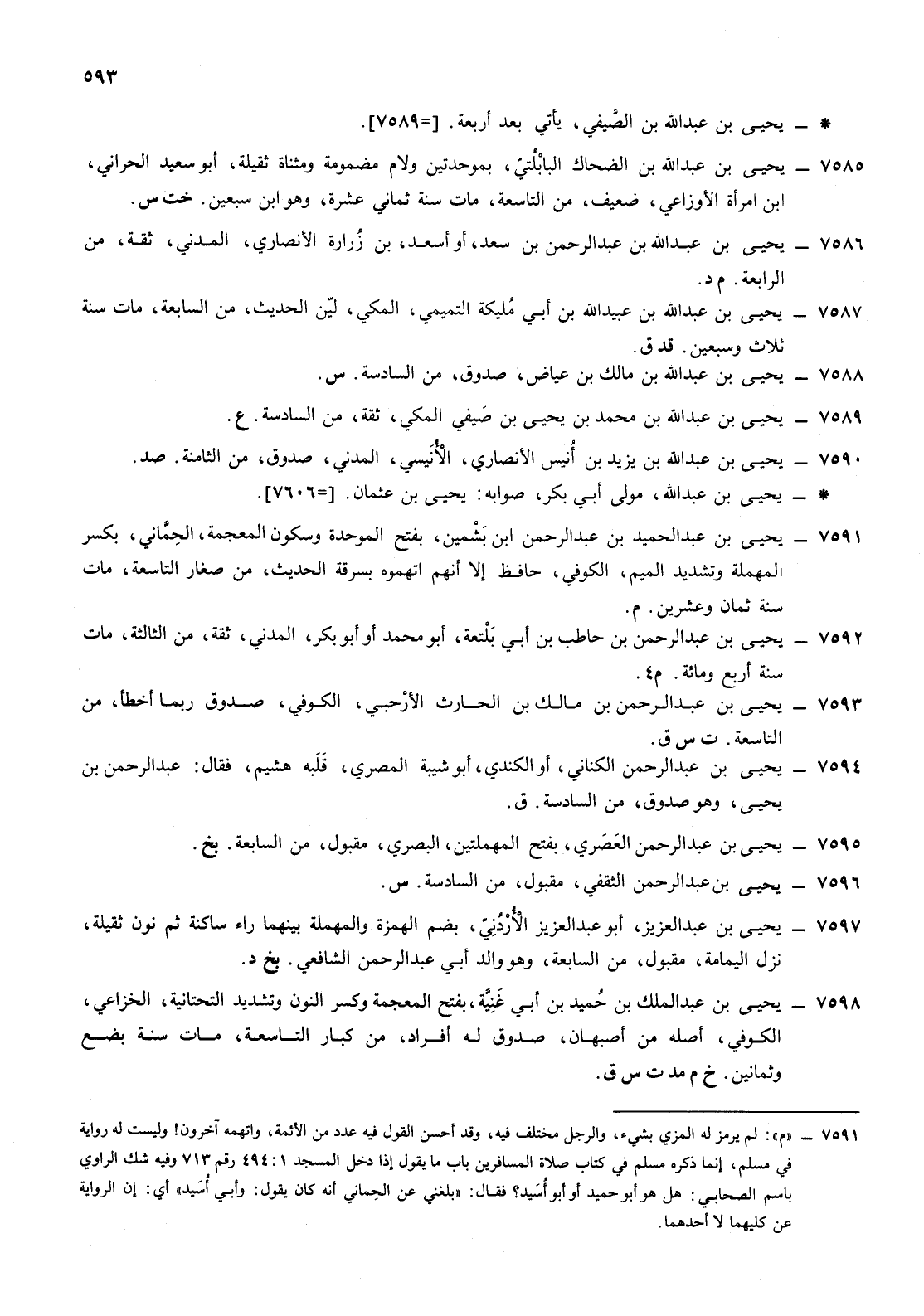 7593- يحيى ابن عبد الرحمن ابن مالك ابن الحارث الأرحبي الكوفي صدوق ربما أخطأ من التاسعة ت س ق