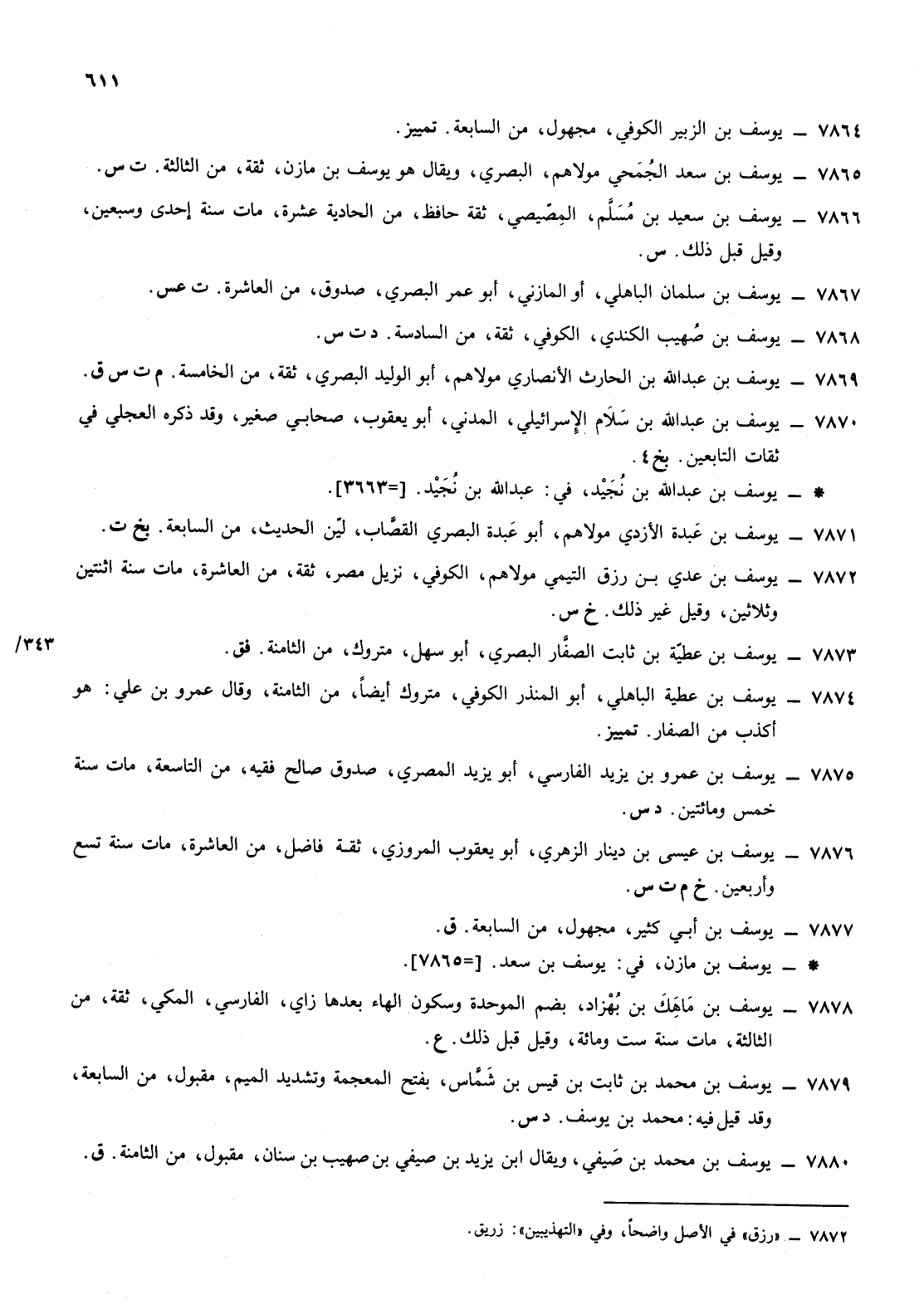 7865- يوسف ابن سعد الجمحي مولاهم البصري ويقال هو يوسف ابن مازن ثقة من الثالثة ت س