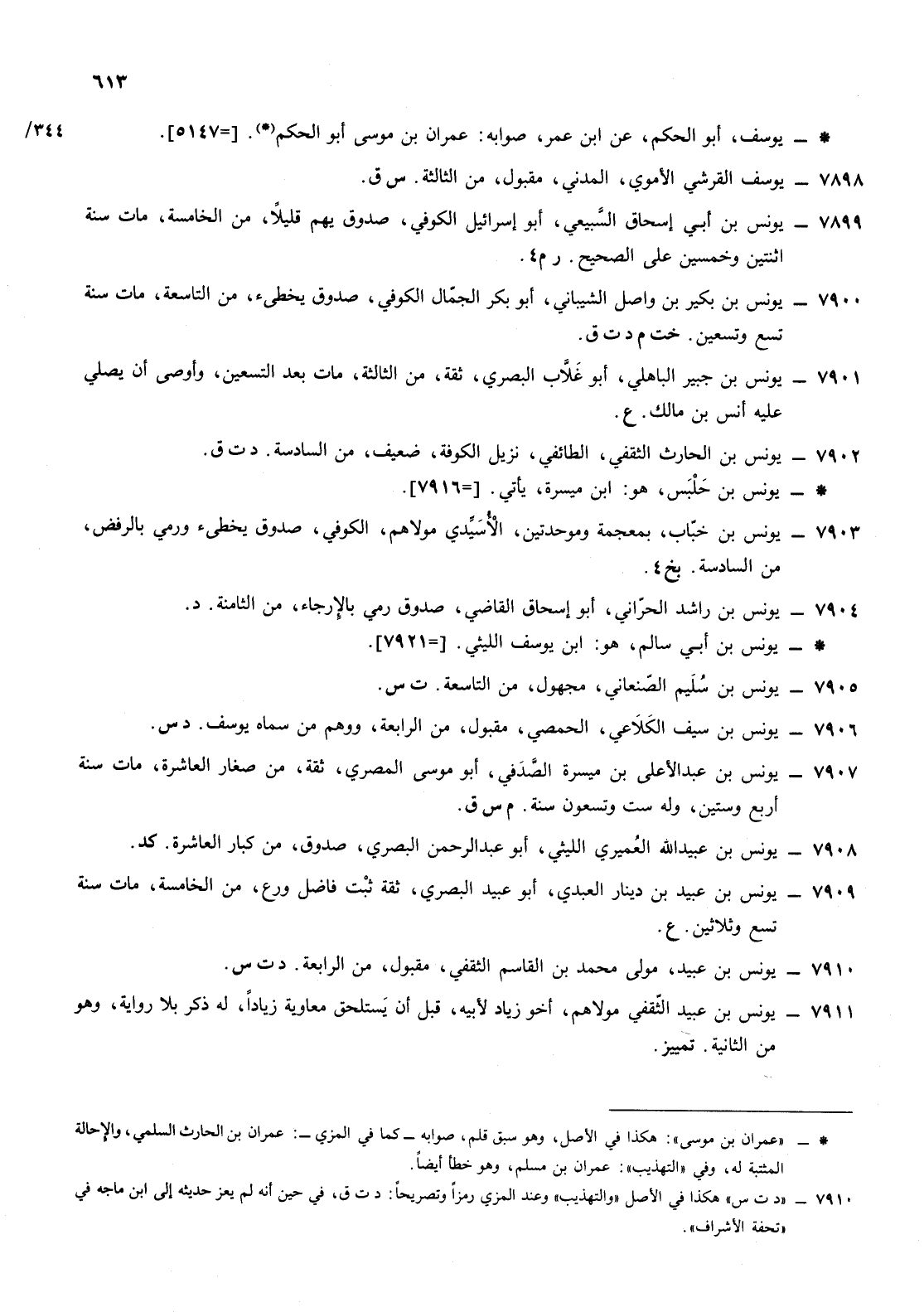 7909- يونس ابن عبيد ابن دينار العبدي أبو عبيد البصري ثقة ثبت فاضل ورع من الخامسة مات سنة تسع وثلاثين ع