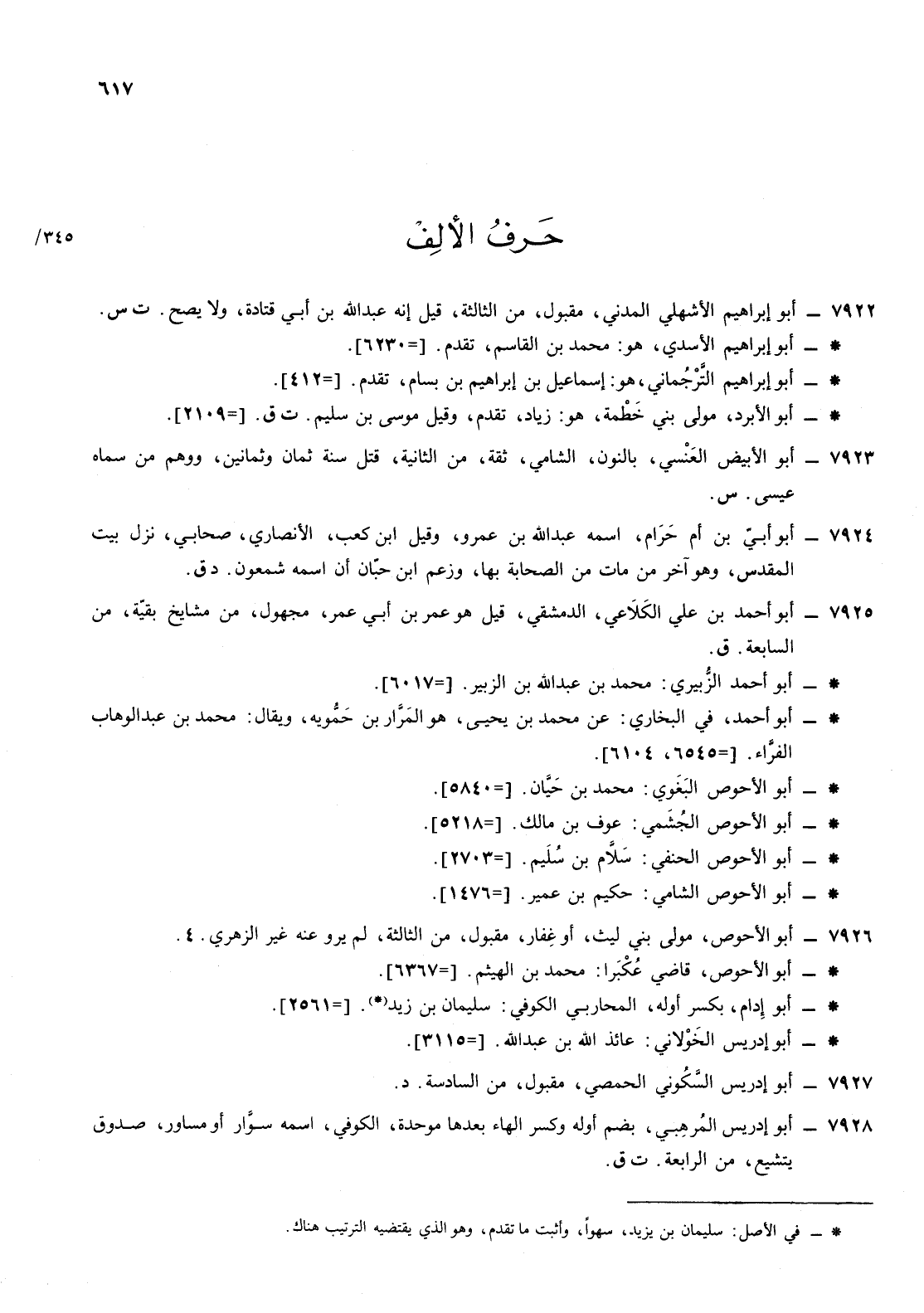 7928- أبو إدريس المرهبي بضم أوله وكسر الهاء بعدها موحدة الكوفي اسمه سوار أو مساور صدوق يتشيع من الرابعة ت ق