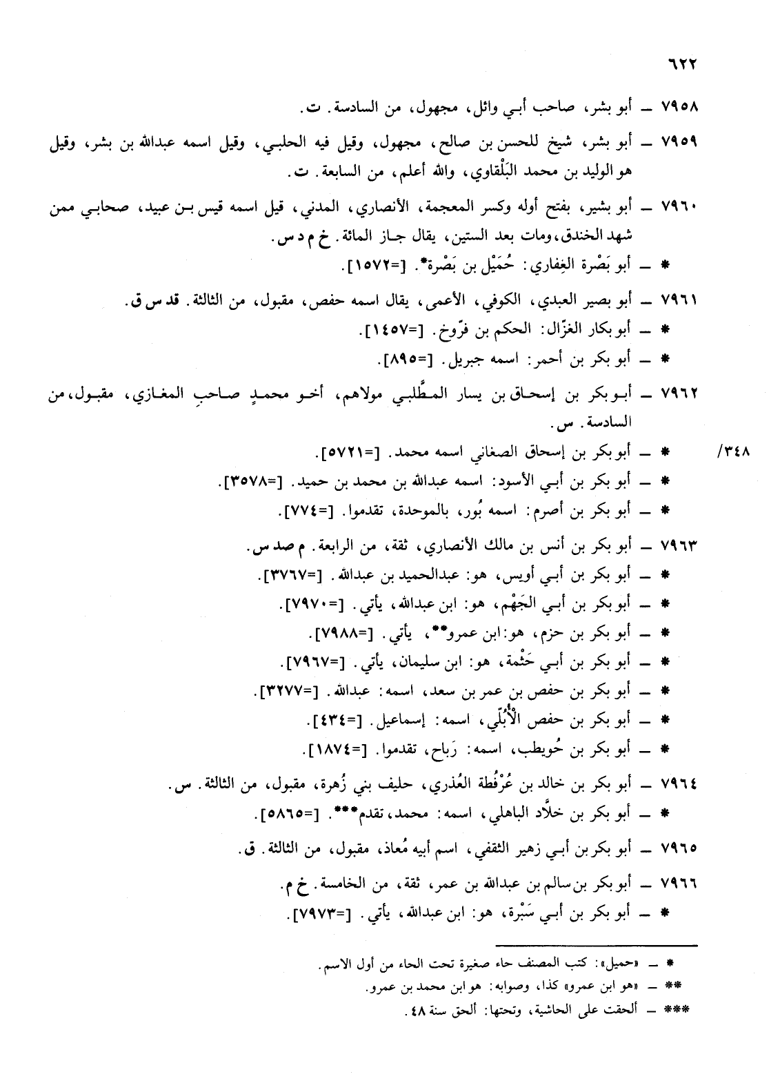 7959- أبو بشر شيخ للحسن ابن صالح مجهول وقيل فيه الحلبي وقيل اسمه عبد الله ابن بشر وقيل هو الوليد ابن محمد البلقاوي والله أعلم من السابعة ت
