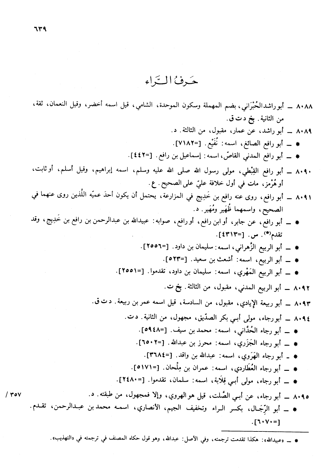 8088- أبو راشد الحبراني بضم المهملة وسكون الموحدة الشامي قيل اسمه أخضر وقيل النعمان ثقة من الثانية بخ د ت ق