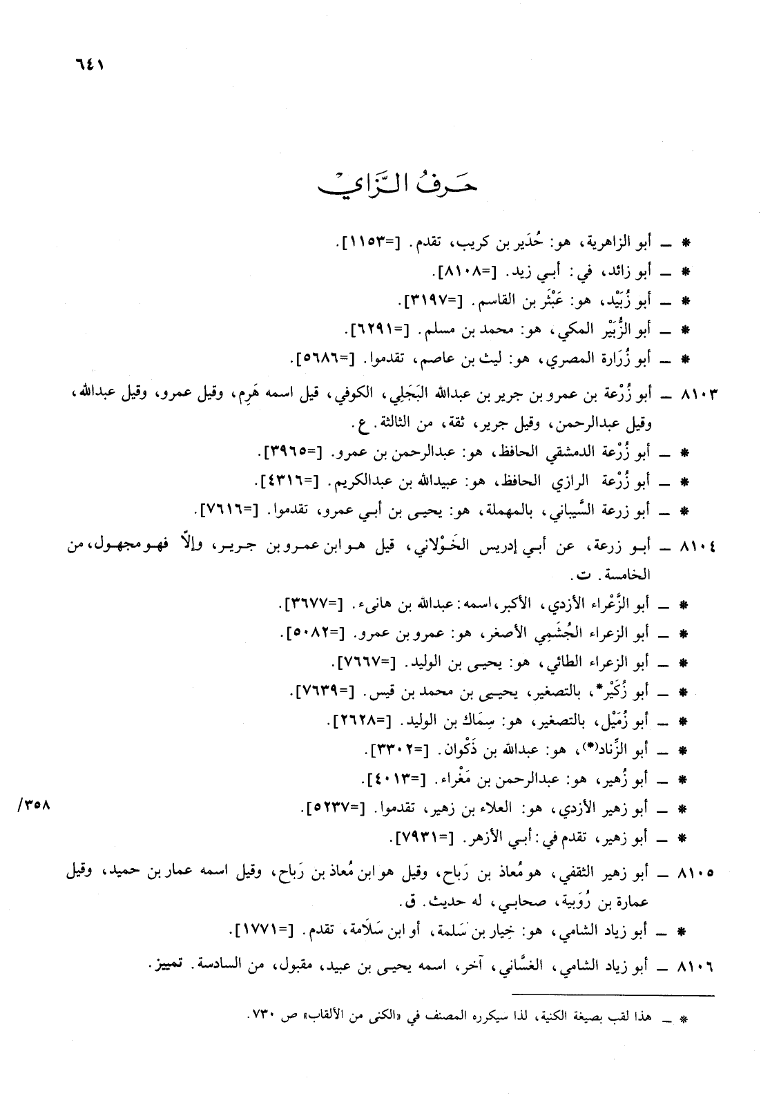 8103- أبو زرعة ابن عمرو ابن جرير ابن عبد الله البجلي الكوفي قيل اسمه هرم وقيل عمرو وقيل عبد الله وقيل عبد الرحمن وقيل جرير ثقة من الثالثة ع