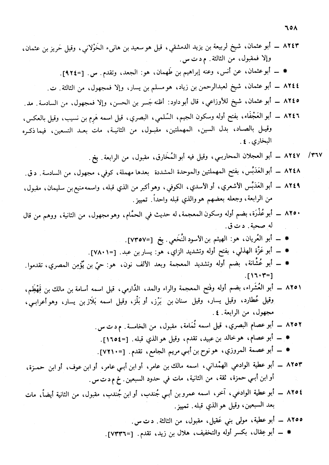 8243- أبو عثمان شيخ لربيعة ابن يزيد الدمشقي قيل هو سعيد ابن هانئ الخولاني وقيل حريز ابن عثمان وإلا فمقبول من الثالثة م د ت س