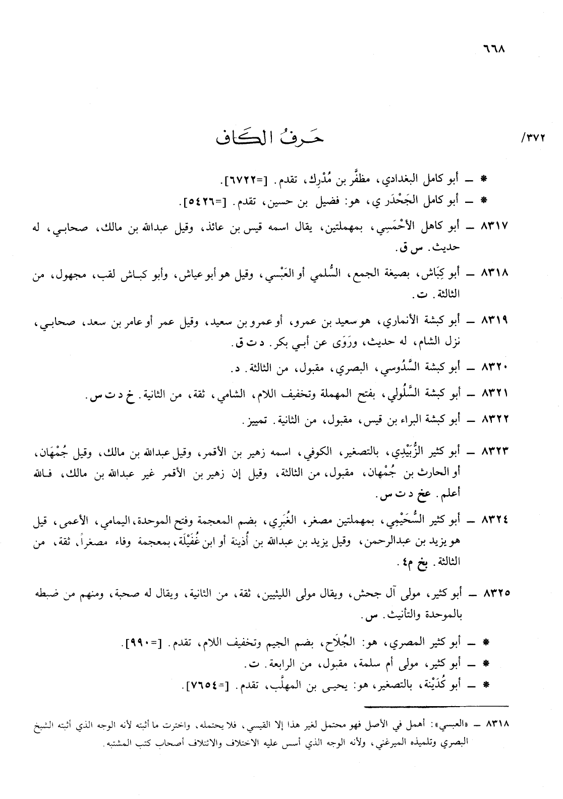 8318- أبو كباش بصيغة الجمع السلمي أو العبسي [العيشي] وقيل هو أبو عياش وأبو كباش لقب مجهول من الثالثة ت