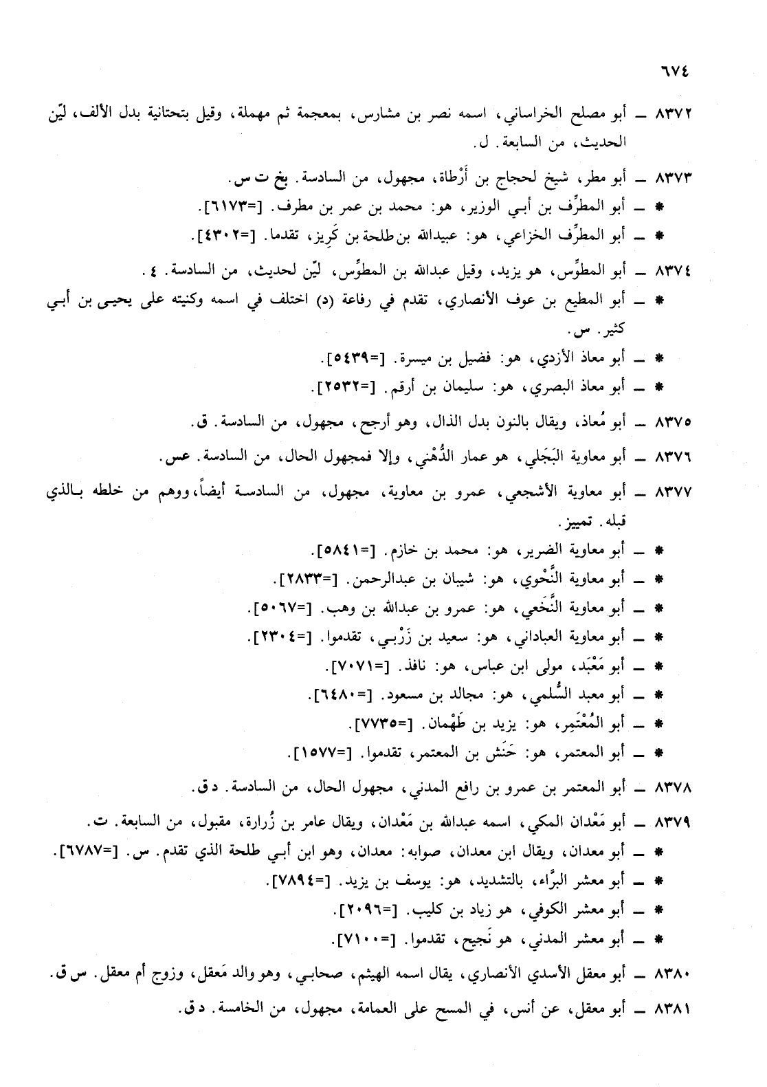 8377- أبو معاوية الأشجعي عمرو ابن معاوية مجهول من السادسة أيضا ووهم من خلطه بالذي قبله تمييز