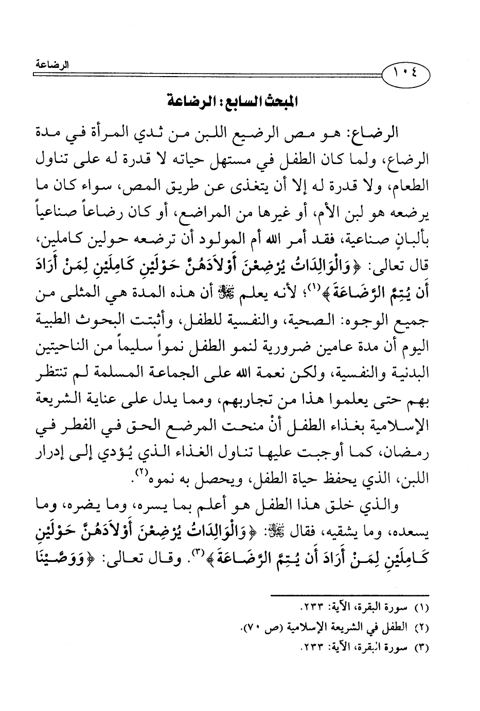 (¬3) سورة البقرة، الآية: 233.