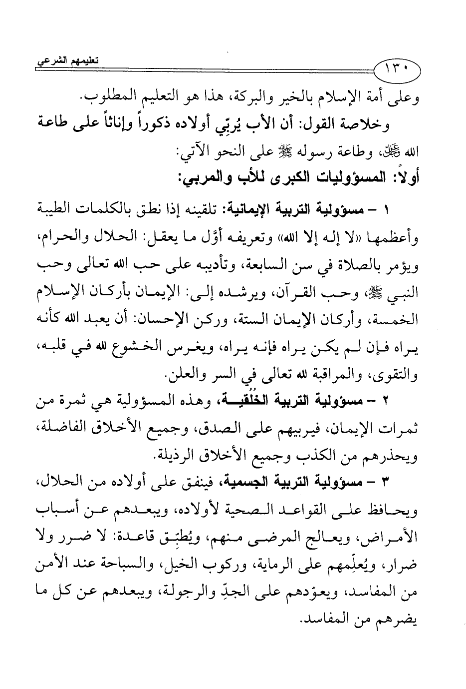 أولاً: المسؤوليات الكبرى للأب والمربي: