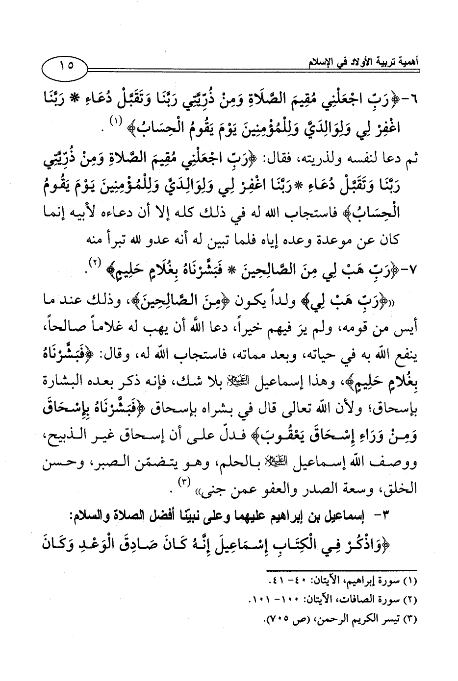 7 - (رَبِّ هَبْ لِي مِنَ الصَّالِحِينَ * فَبَشَّرْنَاهُ بِغُلَامٍ حَلِيمٍ) (¬2).