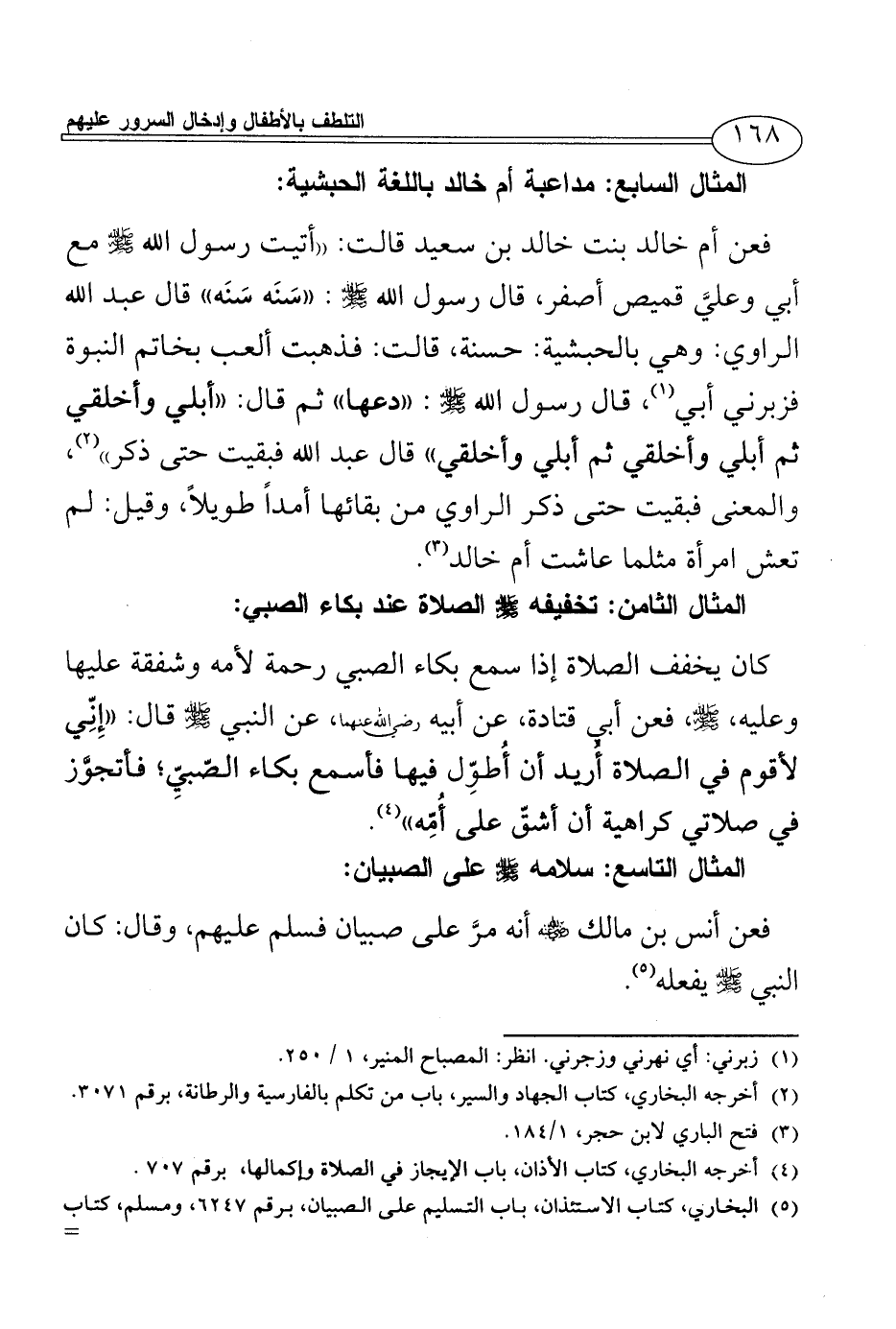 (¬5) البخاري، كتاب الاستئذان، باب التسليم على الصبيان، برقم 6247، ومسلم، كتاب السلام، باب استحباب السلام على الصبيان، برقم 2168.