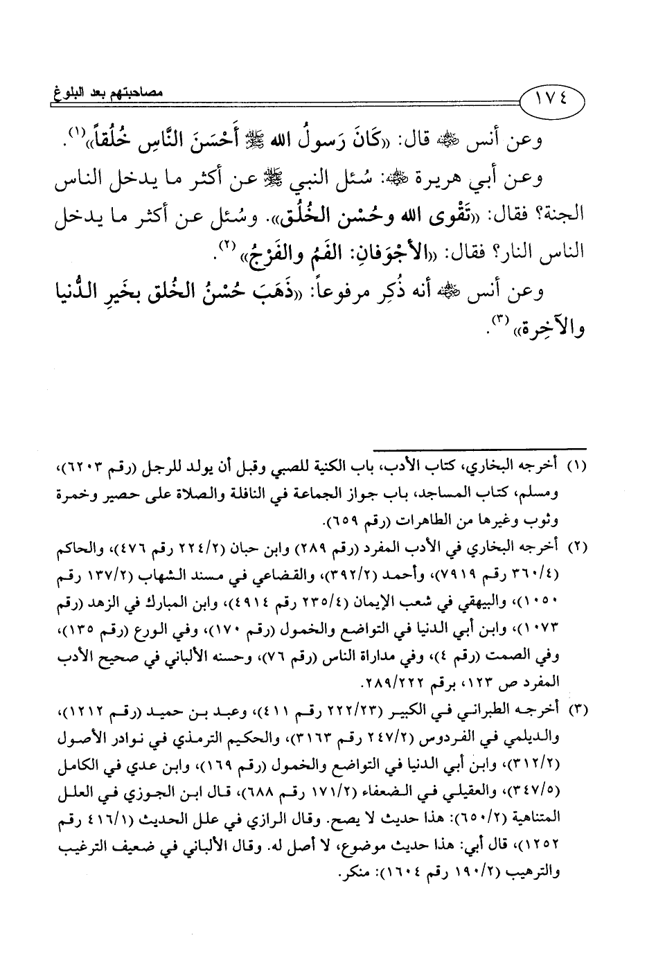 (¬2) أخرجه البخاري في الأدب المفرد (رقم 289) وابن حبان (2/ 224 رقم 476)، والحاكم (4/ 360 رقم 7919)، وأحمد (2/ 392)، والقضاعي في مسند الشهاب (2/ 137 رقم 1050)، والبيهقي في شعب الإيمان (4/ 235 رقم 4914)، وابن المبارك في الزهد (رقم 1073)، وابن أبي الدنيا في التواضع والخمول (رقم 170)، وفي الورع (رقم 135)، وفي الصمت (رقم 4)، وفي مداراة الناس (رقم 76)، وحسنه الألباني في صحيح الأدب المفرد ص 123، برقم 222/ 289.