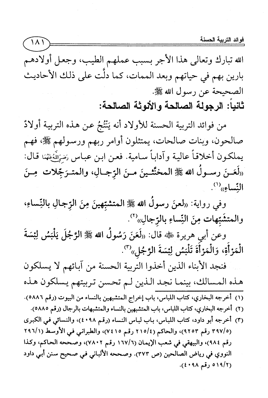 (¬2) أخرجه البخاري، كتاب اللباس، باب المتشبهين بالنساء والمتشبهات بالرجال (رقم 5885).