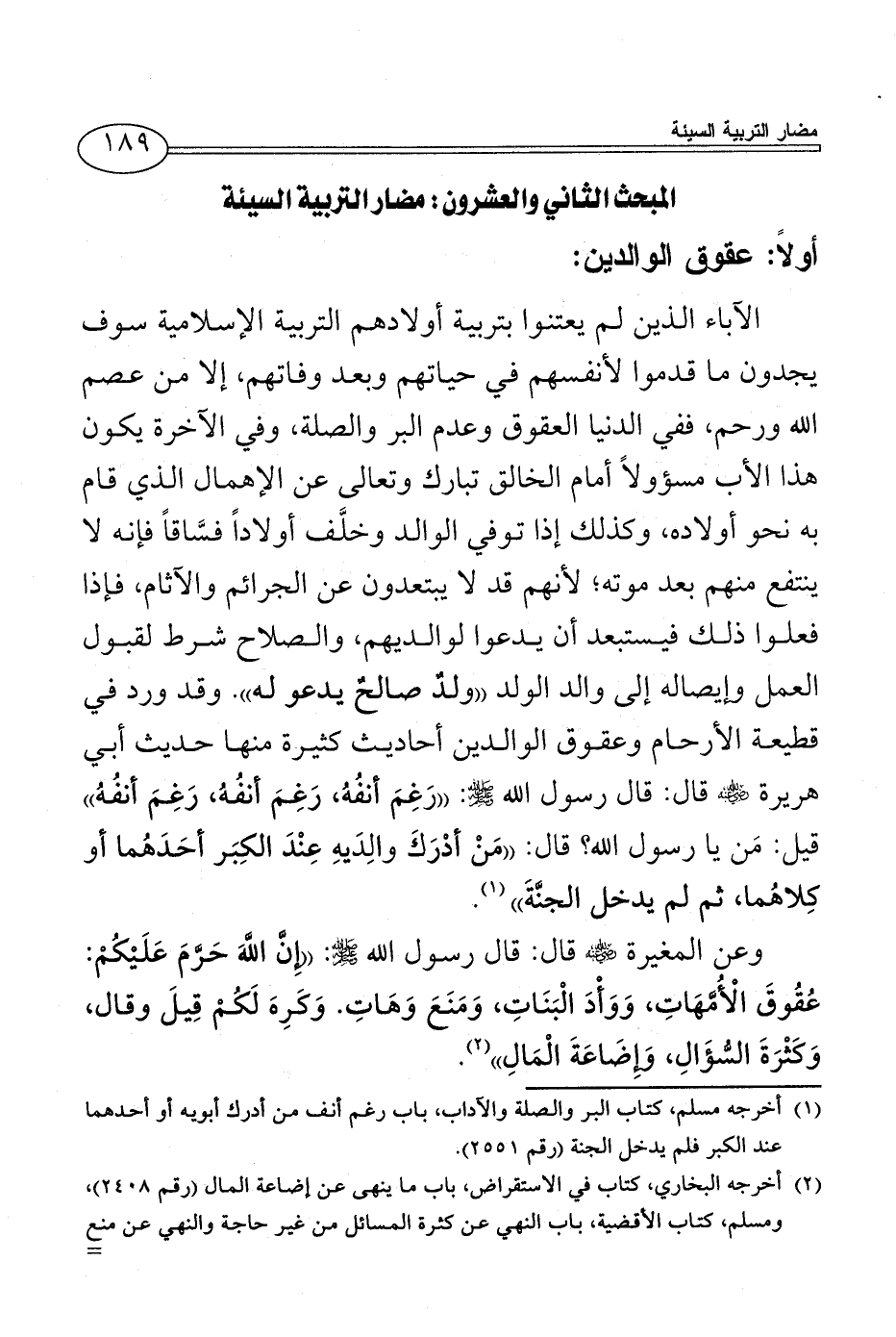 المبحث الثاني والعشرون: مضار التربية السيئة