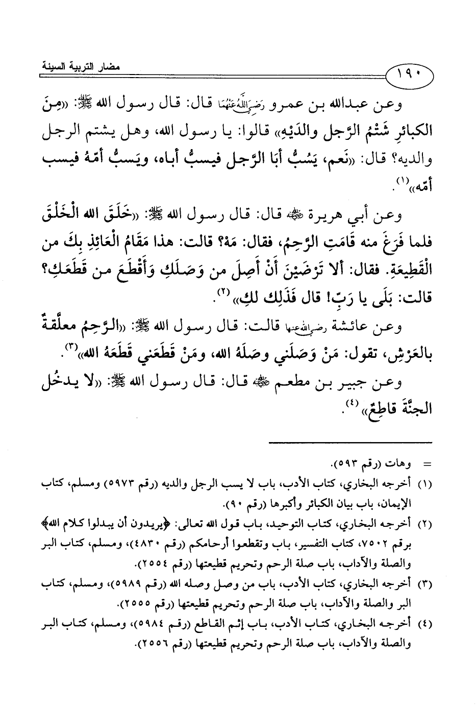 (¬1) أخرجه البخاري، كتاب الأدب، باب لا يسب الرجل والديه (رقم 5973) ومسلم، كتاب الإيمان، باب بيان الكبائر وأكبرها (رقم 90).