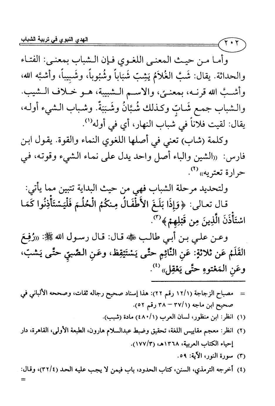 وكلمة (شاب) تعني في أصلها اللغوي النماء والقوة. يقول ابن فارس: ((الشين والباء أصل واحد يدل على نماء الشيء وقوته، في حرارة تعتريه)) (¬2).