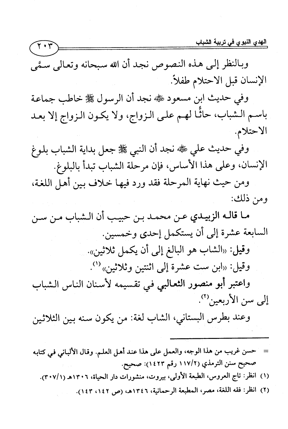 وفي حديث ابن مسعود - رضي الله عنه - نجد أن الرسول - صلى الله عليه وسلم - خاطب جماعة باسم الشباب، حاثًّا لهم على الزواج، ولا يكون الزواج إلا بعد الاحتلام.