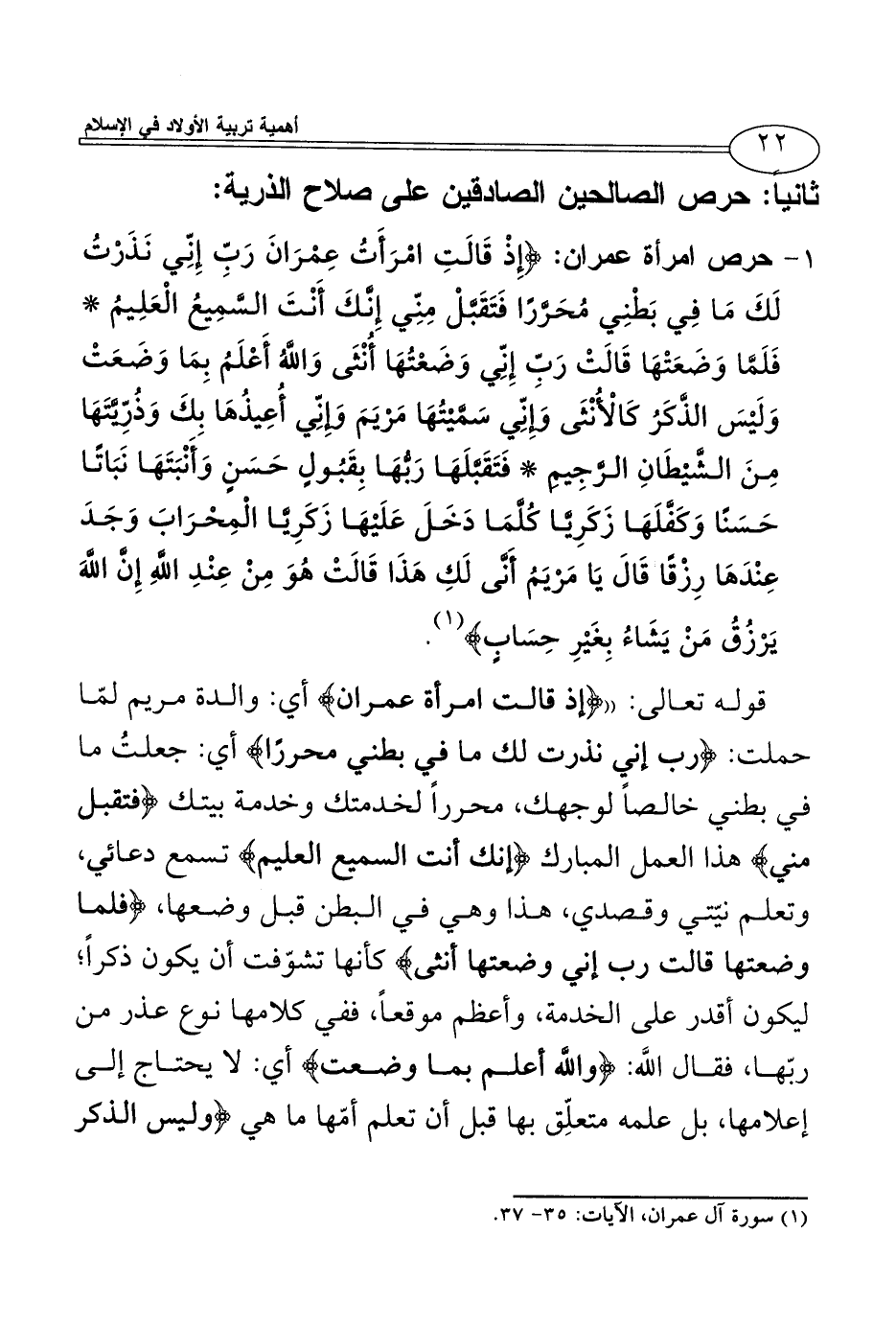 (¬1) سورة آل عمران، الآيات: 35 - 37.