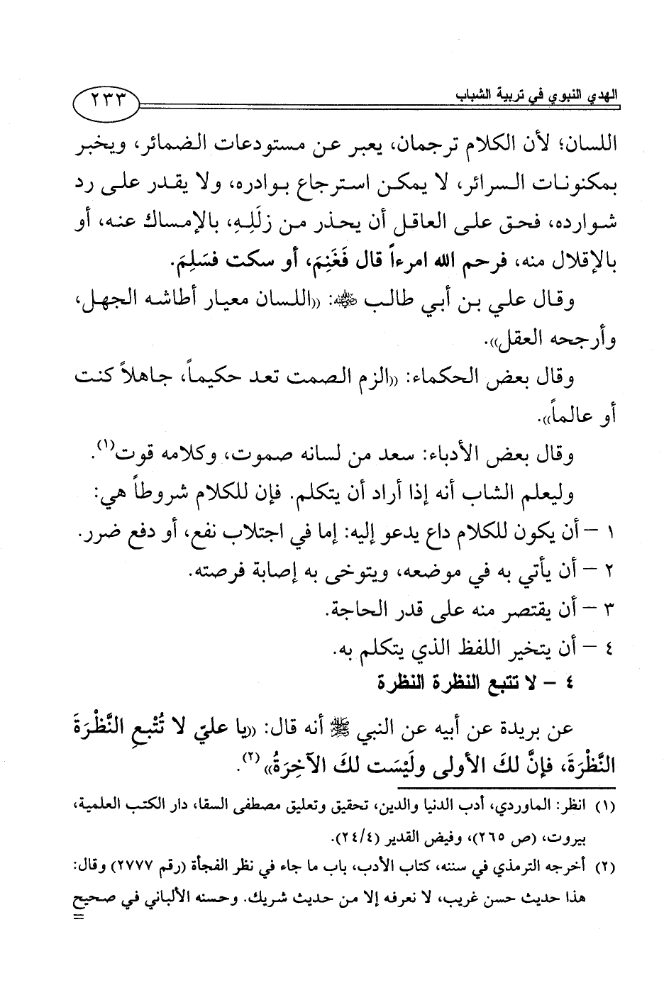 وليعلم الشاب أنه إذا أراد أن يتكلم. فإن للكلام شروطاً هي: