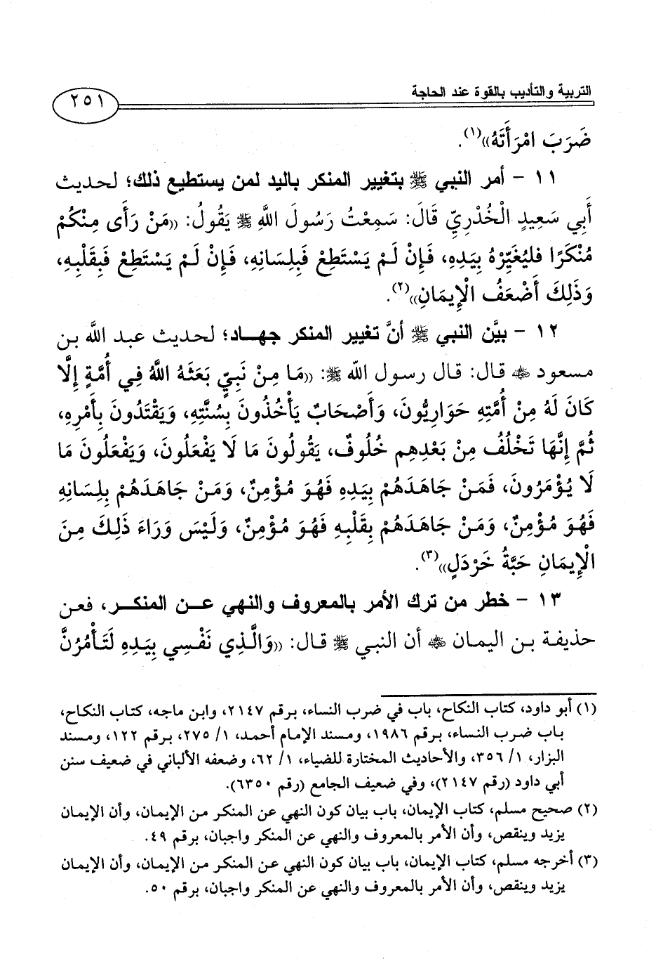 (¬2) صحيح مسلم، كتاب الإيمان، باب بيان كون النهي عن المنكر من الإيمان، وأن الإيمان يزيد وينقص، وأن الأمر بالمعروف والنهي عن المنكر واجبان، برقم 49.
