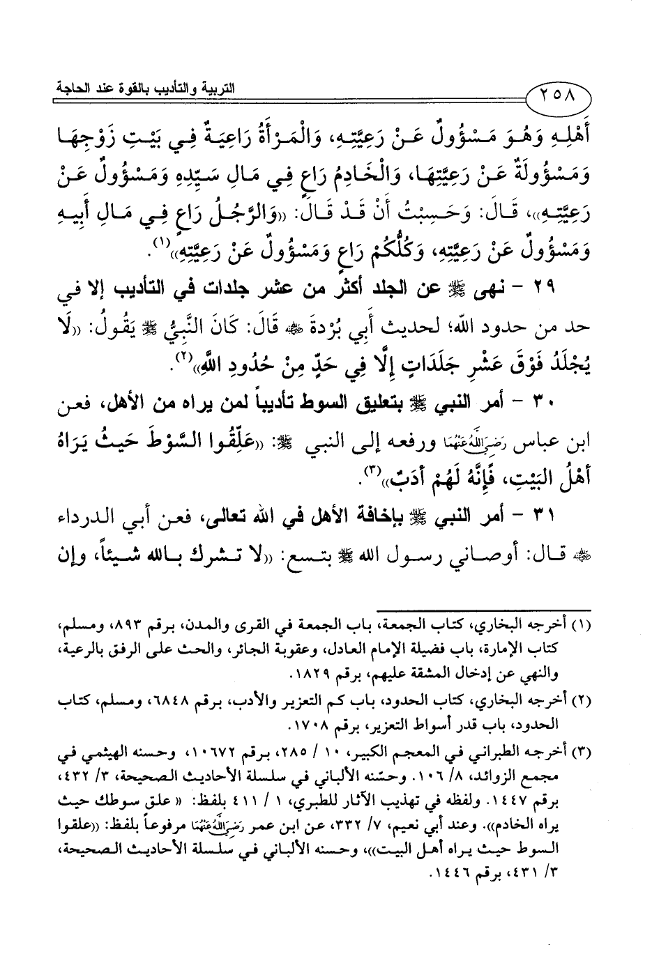 (¬2) أخرجه البخاري، كتاب الحدود، باب كم التعزير والأدب، برقم 6848، ومسلم، كتاب الحدود، باب قدر أسواط التعزير، برقم 1708.