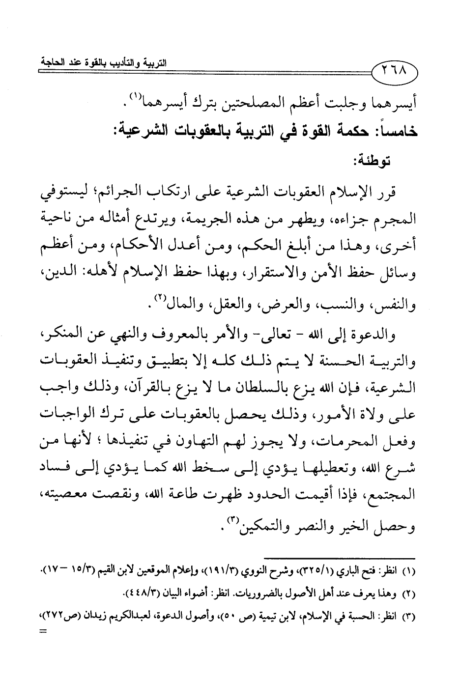 (¬3) انظر: الحسبة في الإسلام، لابن تيمية (ص 50)، وأصول الدعوة، لعبد الكريم زيدان (ص272)، وعناصر القوة في الإسلام (ص 51).