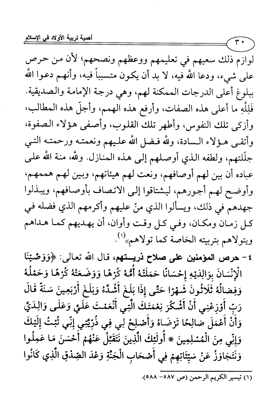 لوازم ذلك سعيهم في تعليمهم ووعظهم ونصحهم؛ لأن من حرص على شيء، ودعا اللَّه فيه، لا بد أن يكون متسبباً فيه، وأنهم دعوا اللَّه ببلوغ أعلى الدرجات الممكنة لهم، وهي درجة الإمامة والصديقية. فَلِلَّهِ ما أعلى هذه الصفات، وأرفع هذه الهمم، وأجلّ هذه المطالب، وأزكى تلك النفوس، وأطهر تلك القلوب، وأصفى هؤلاء الصفوة، وأتقى هؤلاء السادة، وللَّه فضل اللَّه عليهم ونعمته ورحمته التي جلّلتهم، ولطفه الذي أوصلهم إلى هذه المنازل. وللَّه، منة اللَّه على عباده أن بين لهم أوصافهم، ونعت لهم هيئاتهم، وبين لهم هممهم، وأوضح لهم أجورهم، ليشتاقوا إلى الاتصاف بأوصافهم، ويبذلوا جهدهم في ذلك، ويسألوا الذي منّ عليهم وأكرمهم الذي فضله في كل زمان ومكان، وفي كل وقت وأوان، أن يهديهم كما هداهم ويتولاهم بتربيته الخاصة كما تولاهم)) (¬1).