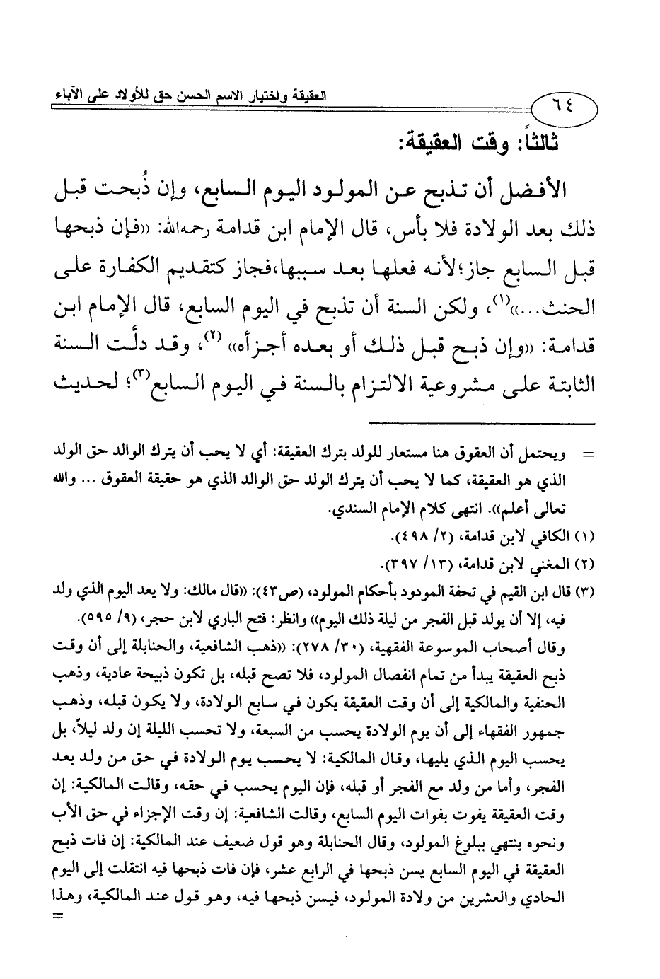 (¬3) قال ابن القيم في تحفة المودود بأحكام المولود، (ص43): ((قال مالك: ولا يعد اليوم الذي ولد فيه، إلا أن يولد قبل الفجر من ليلة ذلك اليوم)) وانظر: فتح الباري لابن حجر، (9/ 595).