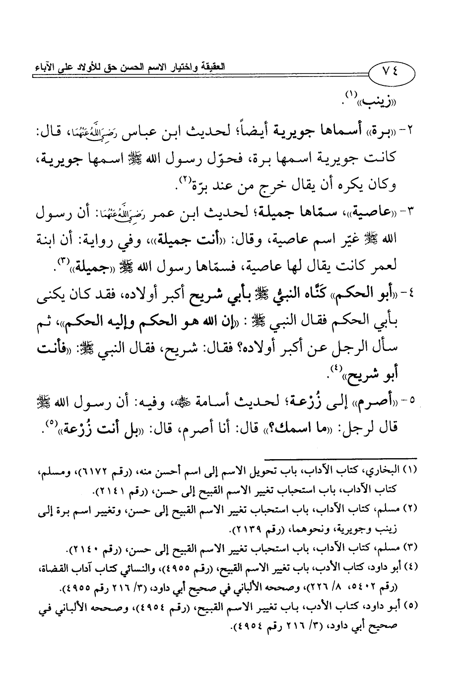 (¬3) مسلم، كتاب الآداب، باب استحباب تغيير الاسم القبيح إلى حسن، (رقم 2140).