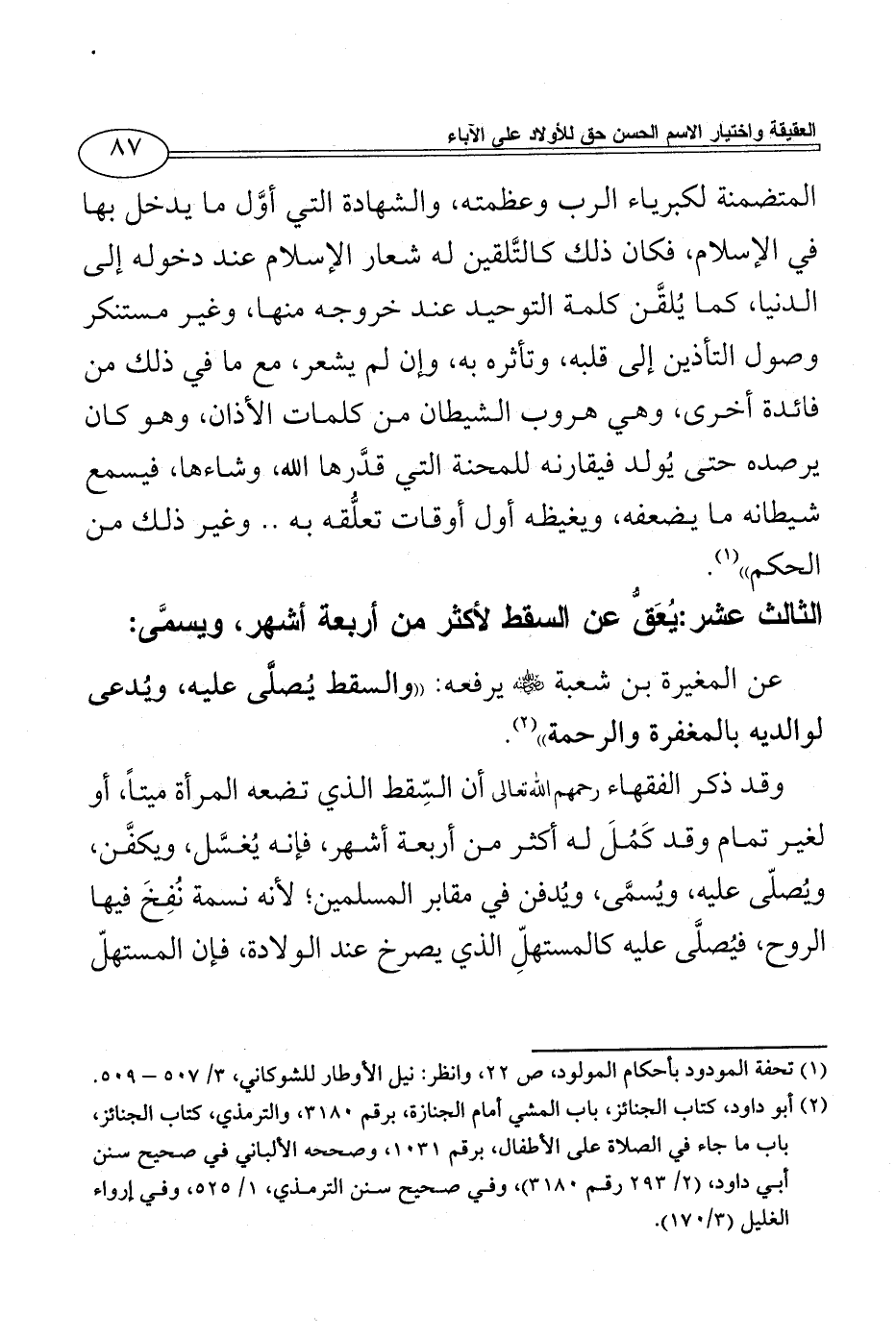 (¬1) تحفة المودود بأحكام المولود، ص 22، وانظر: نيل الأوطار للشوكاني، 3/ 507 – 509.