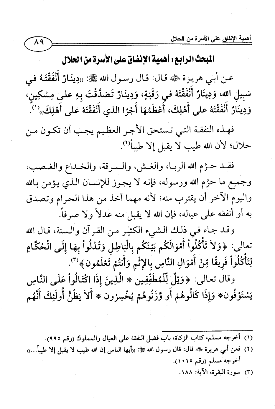 المبحث الرابع: أهمية الإنفاق على الأسرة من الحلال