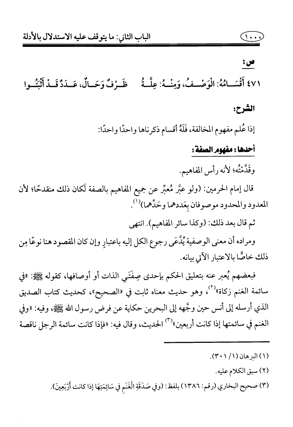 فبعضهم يُعبر عنه بتعليق الحكم بإحدى صِفَتَي الذات أو أوصافها، كقوله - صلى الله عليه وسلم -: "في سائمة الغنم زكاة" (¬٢)، وهو حديث معناه ثابت في "الصحيح"، كحديث كتاب الصديق الذي أرسله إلى أَنس حين وجَّهه إلى البحرين حكاية عن فرض رسول الله - صلى الله عليه وسلم -، وفيه: "وفي الغنم في سائمتها إذا كانت أربعين" (¬٣) الحديث، وقال فيه: "فإذا كانت سائمة الرجل ناقصة