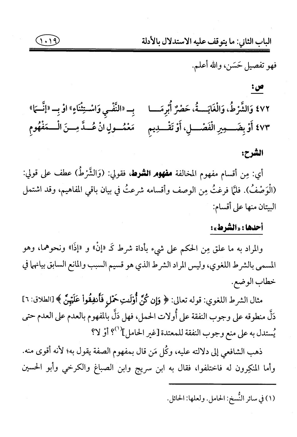 (¬١) في سائر النُّسخ: الحامل. ولعلها: الحائل.