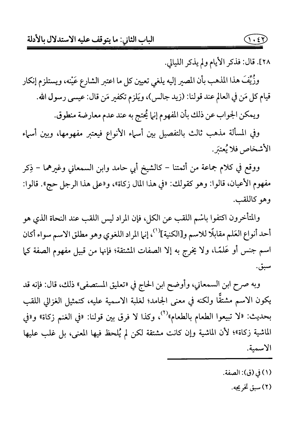 وفي المسألة مذهب ثالث بالتفصيل بين أسماء الأنواع فيعتبر مفهومها، وبين أسماء الأشخاص فلا يُعتبَر.