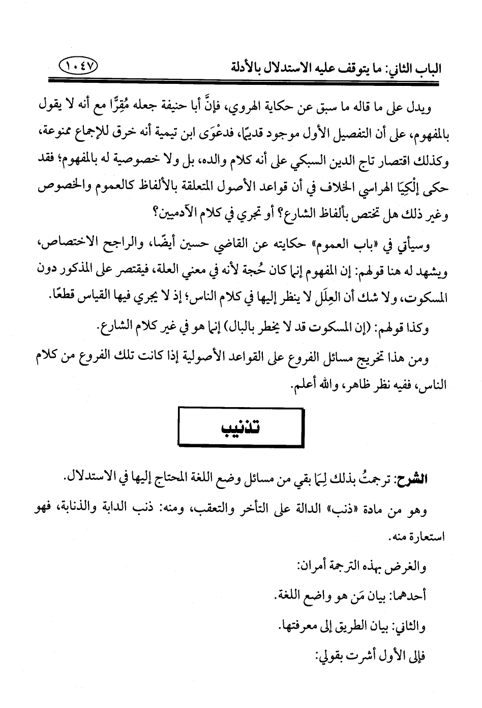 ويدل على ما قاله ما سبق عن حكاية الهروي، فإنَّ أبا حنيفة جعله مُقِرًّا مع أنه لا يقول بالمفهوم، على أن التفصيل الأول موجود قديمًا، فدعْوَى ابن تيمية أنه خرق للإجماع ممنوعة، وكذلك اقتصار تاج الدين السبكي على أنه كلام والده، بل ولا خصوصية له بالمفهوم؛ فقد حكى إلْكِيَا الهراسي الخلاف في أن قواعد الأصول المتعلقة بالألفاظ كالعموم والخصوص وغير ذلك هل تختص بألفاظ الشارع؛ أو تجري في كلام الآدميين؟